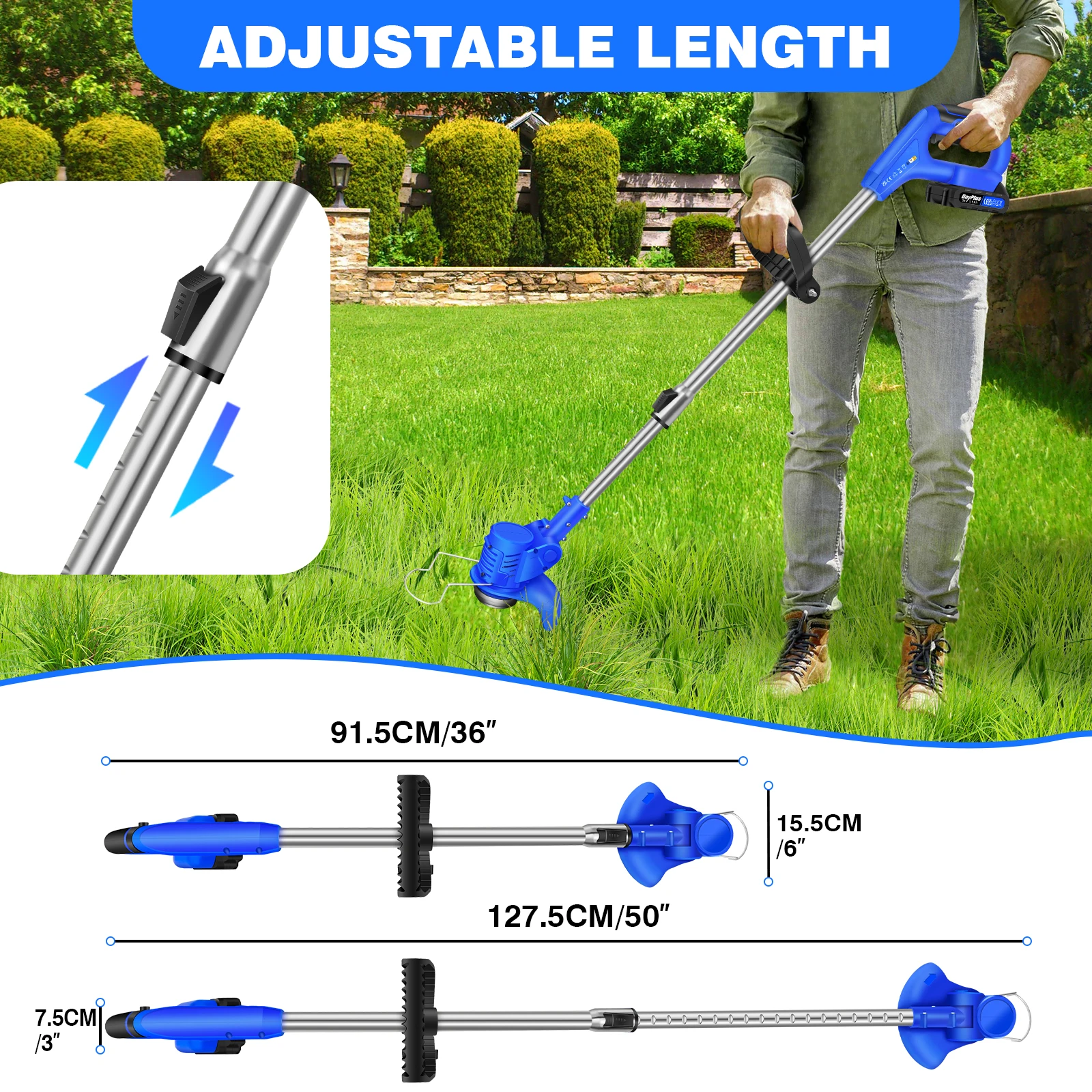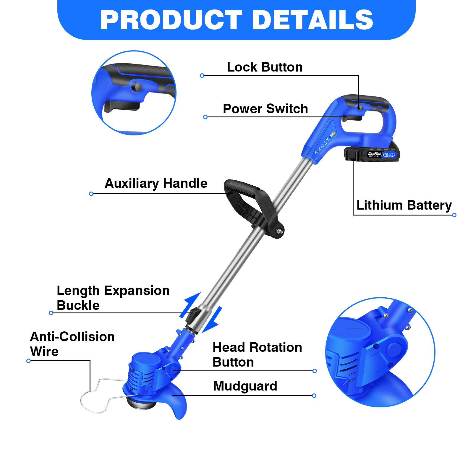 21V Cordless Electric Weed Wacker (3-in-1, Blue)