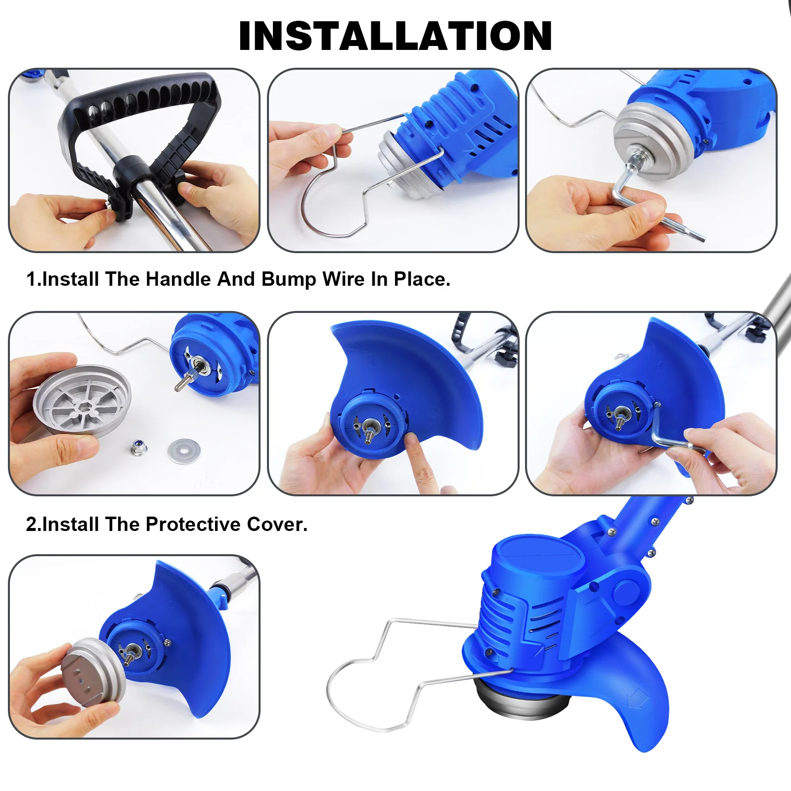 This 21V Cordless Weed Wacker is a versatile 3-in-1 Electric tool that combines power (10000 RPM) and portability. Its CORDLESS LIGHTWEIGHT design and ANTI-COLLISION BAR make it a durable and efficient solution for all your Lawn, Garden, Yard, Park, and Field trimming needs.