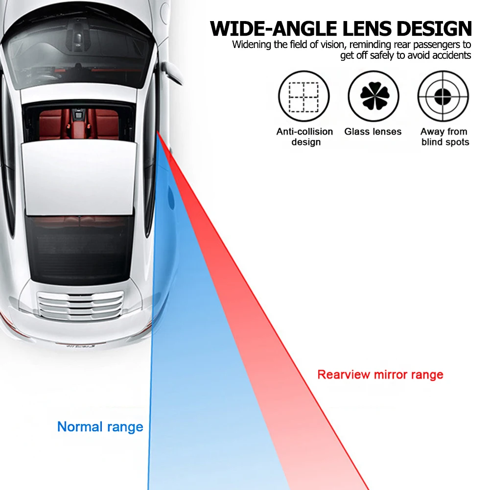 Application: Features a strong adsorption base that can be mounted to interior pillars (A-pillar or B-pillar) to provide a wide-angle view of blind spots or the backseat.