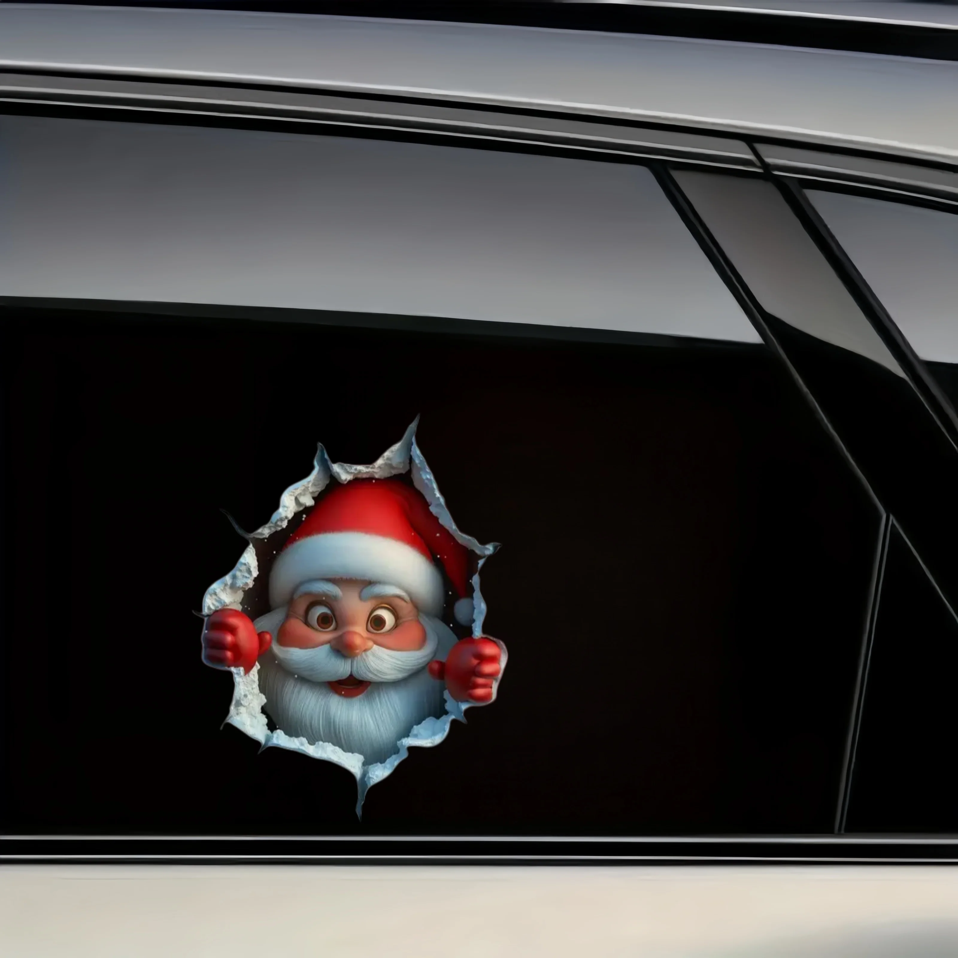 Questo adesivo divertente e festoso crea un'illusione 3D spettacolare, in cui Babbo Natale squarcia giocosamente la carrozzeria o il finestrino del tuo veicolo. È l'accessorio perfetto per diffondere la gioia delle feste con un'estetica unica e di grande impatto.