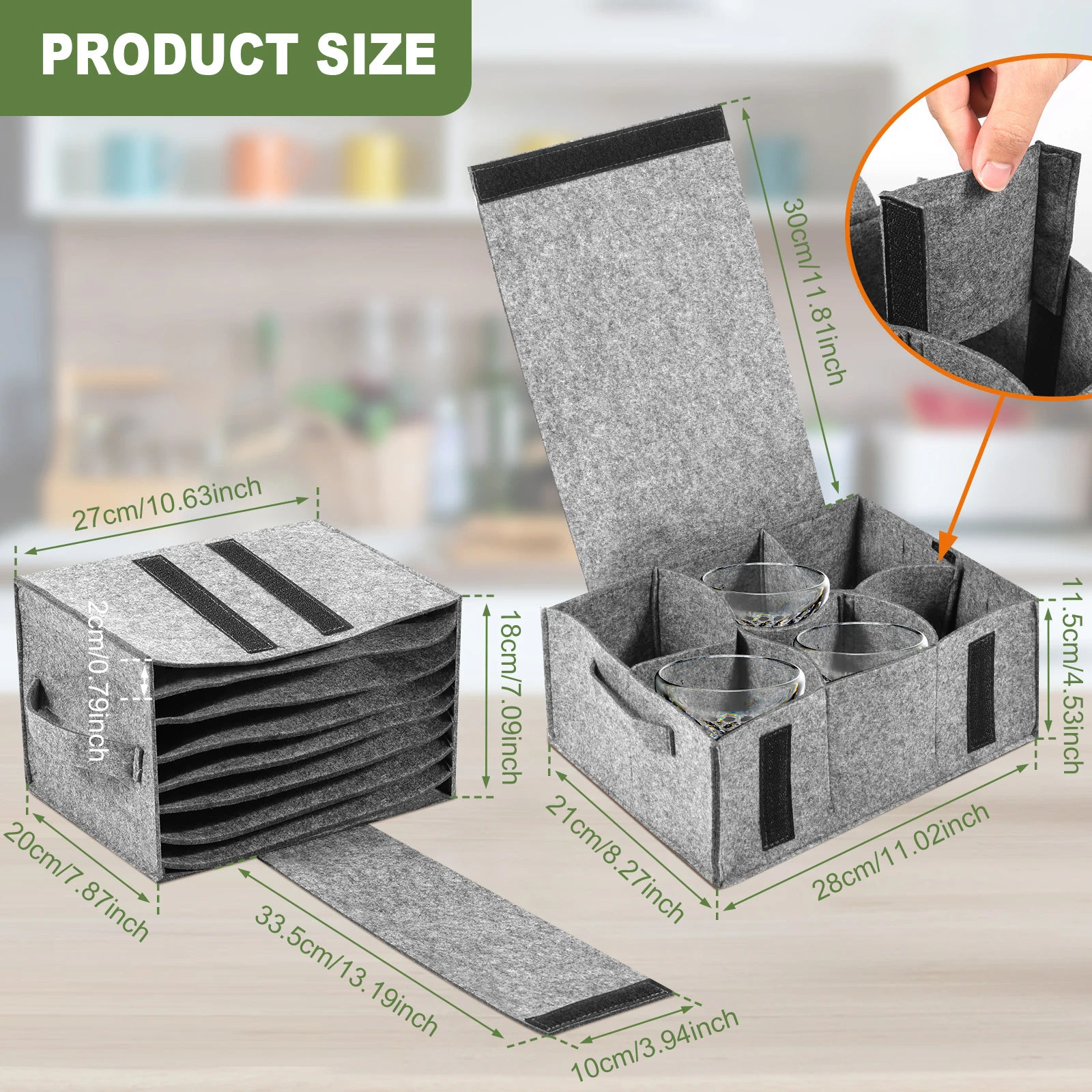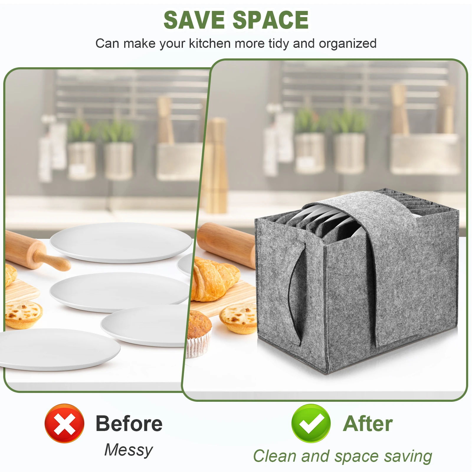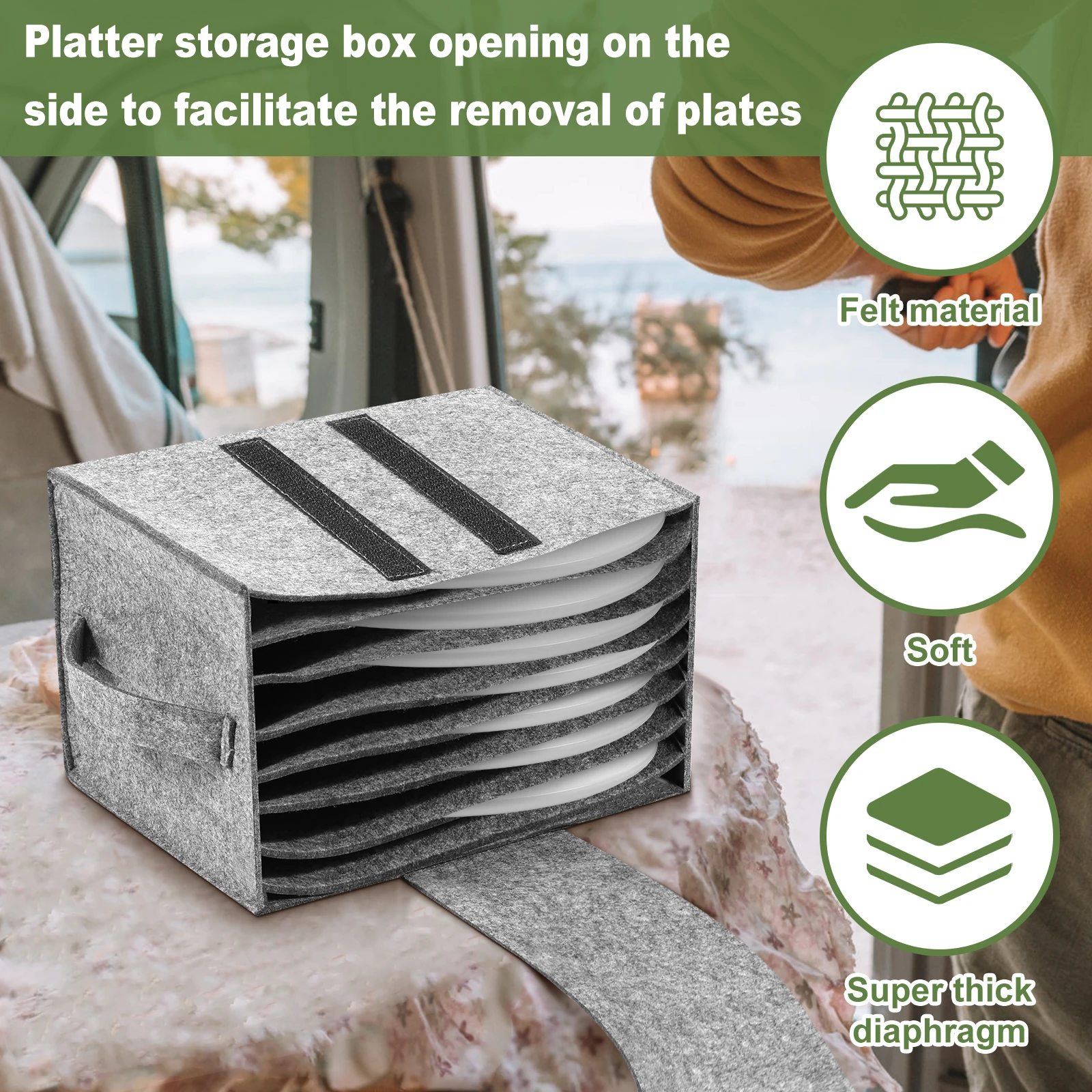 The 2Pcs Felt Storage Set is a must-have for any traveler who values their peace and their dinnerware. Unlike rigid plastic containers, the flexible felt molds slightly to your items, providing superior shock absorption. It solves the common problem of broken dishes and noisy cupboards in mobile living environments. It turns chaotic, rattling cabinets into neat, silent, and safe storage spaces.