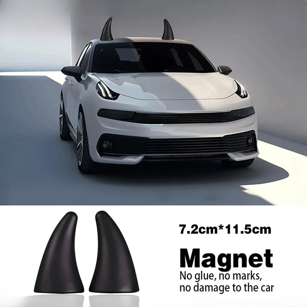 This product is a playful and eye-catching 3D Car Sticker designed in the shape of Devil (or Bull) Horns. It serves as a "Cute Creative Stereo Decor" piece that stands upright on your car roof, hood, or helmet, instantly adding a unique and humorous character to your vehicle's exterior.