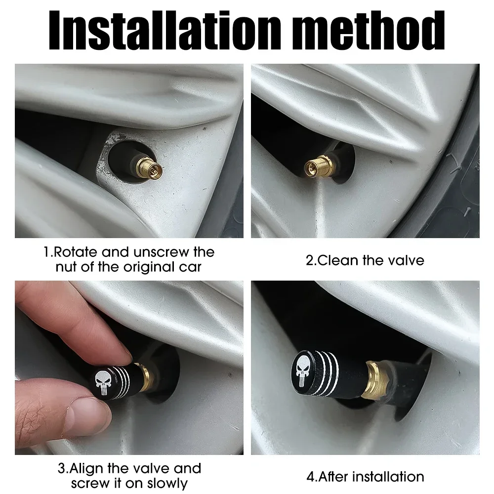 These Aluminum Alloy Skull Pattern valve caps provide a durable and colorful aesthetic upgrade. Their robust metal construction and dustproof design ensure long-lasting protection for your tire valve stems, combining custom styling with essential maintenance.