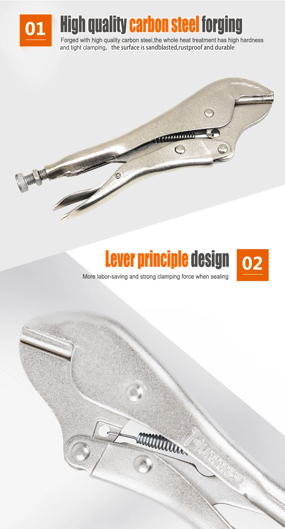 Style: Described as a heavy-duty locking spanner style, providing the stability of a vise with the reach of long-nose pliers. The overall aesthetic is Industrial and Robust.
