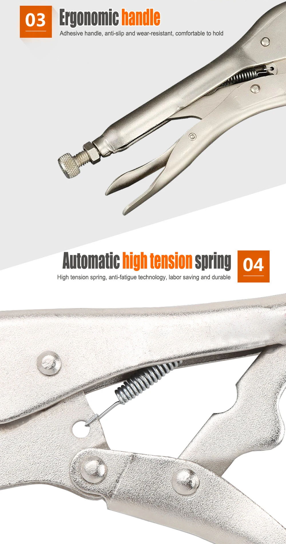 The 90° Bent Nose Locking Pliers are the ultimate solution for delicate and complex work in confined areas. The ability to lock firmly at a right angle eliminates excessive effort and increases safety by preventing tool slip on critical components. With forged construction and easy adjustment, these pliers are a favorite for professionals who demand efficiency and superior reach in challenging automotive and industrial maintenance.