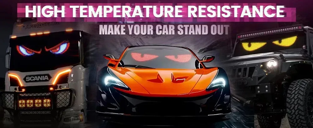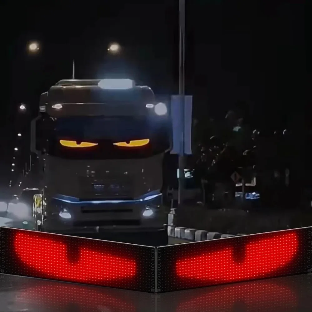 Design & Visuals: Features highly detailed Pixel LED displays capable of showing intense "Devil Eyes" in multiple colors (Red, Green, Yellow, Blue). The material is designed for wide, prominent placement on the vehicle front.