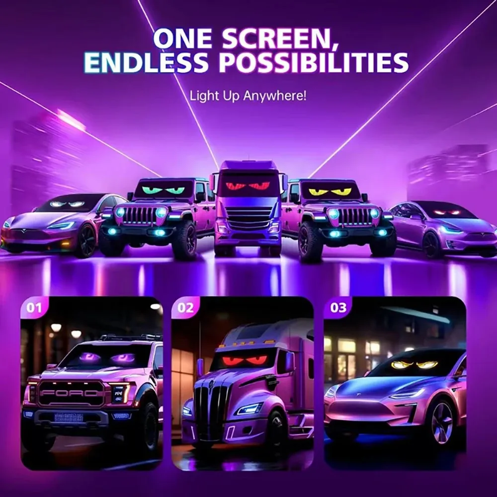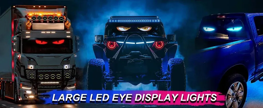 Unleash an ultra-aggressive and customized look with this dynamic, Bluetooth App-controlled LED panel system that projects vibrant "Devil Eyes" and other personalized animations onto your vehicle's grille. It's the ultimate upgrade for Truck, Off-Road, and Show Car enthusiasts seeking intense visual customization and DIY control.