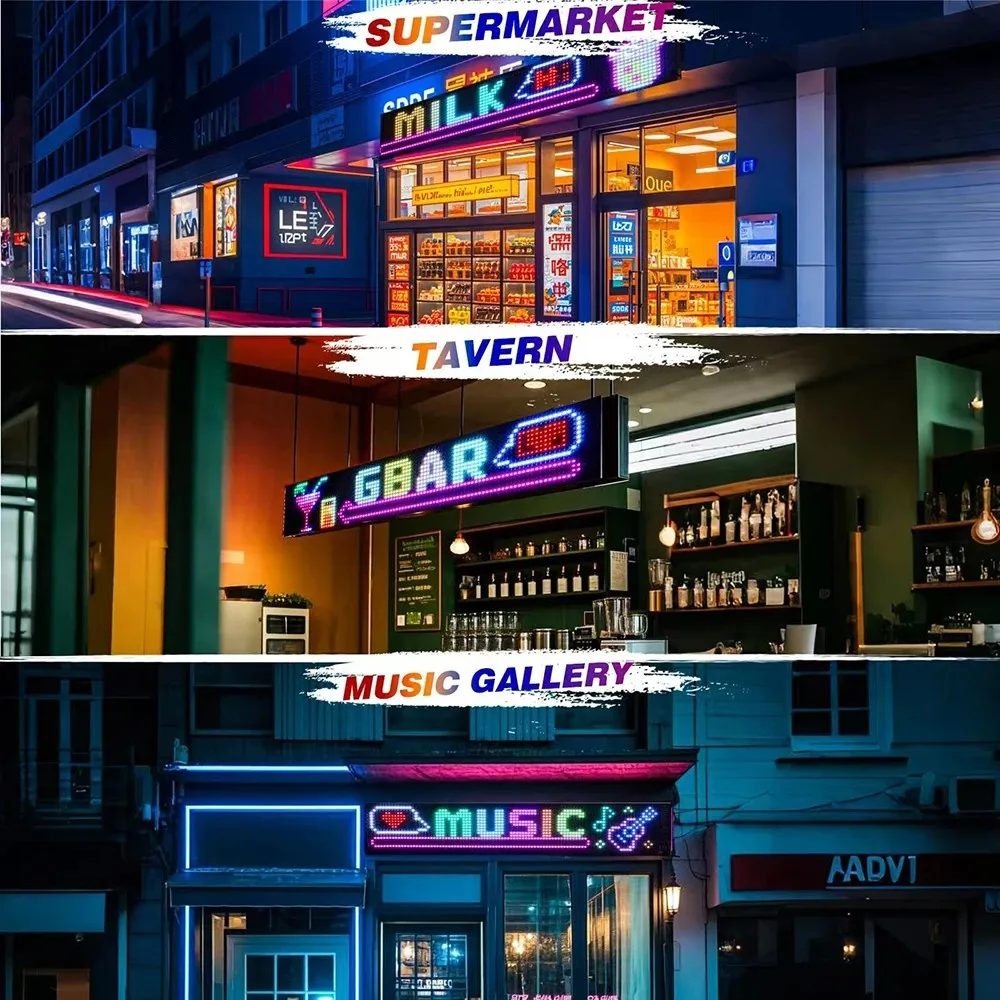 The LED signs can customize text, patterns and animations. You can edit according to your own needs and ideas, you can also change the display content according to the usage scene, and you can also edit exclusive patterns and animations according to the characteristics of your own store.