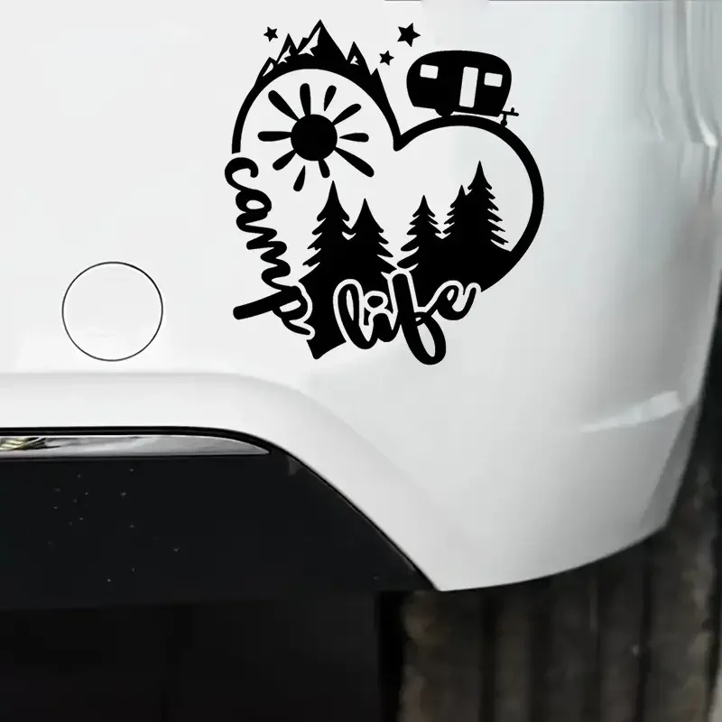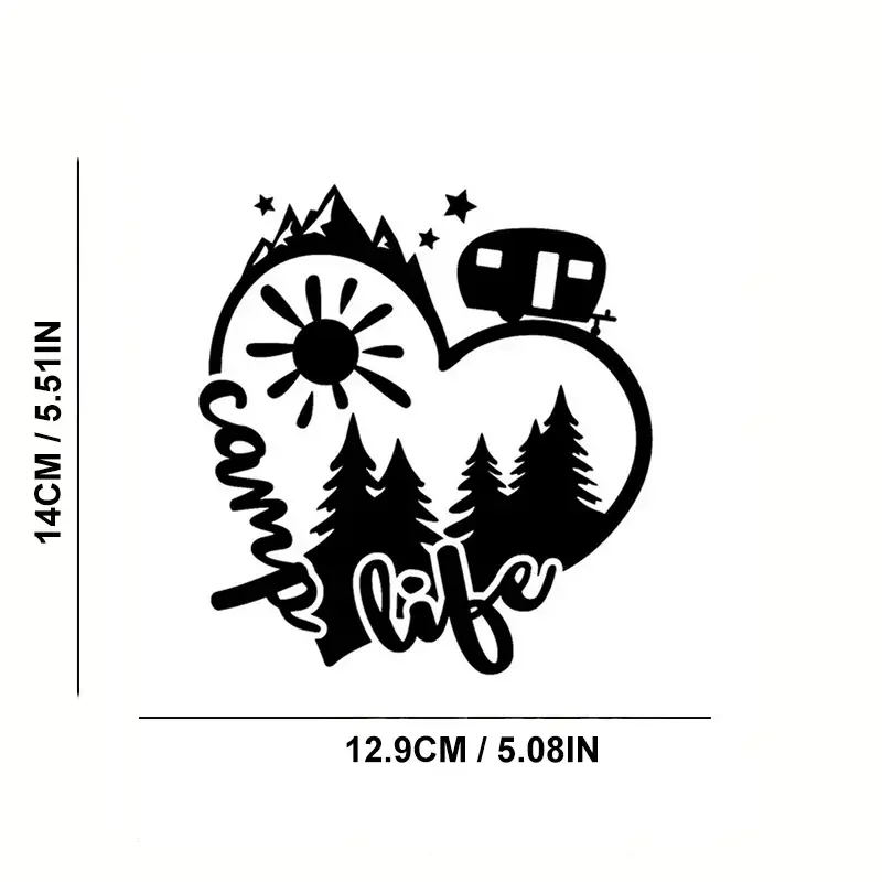 The "Camp Life" Sun Mountain Heart decal is a beautiful way to express your passion and love for RVing and the great outdoors. It serves as a personal, artistic badge of your lifestyle, adding warmth and character to your mobile home. The durable vinyl ensures that this charming symbol of your adventures will travel with you for many seasons to come.