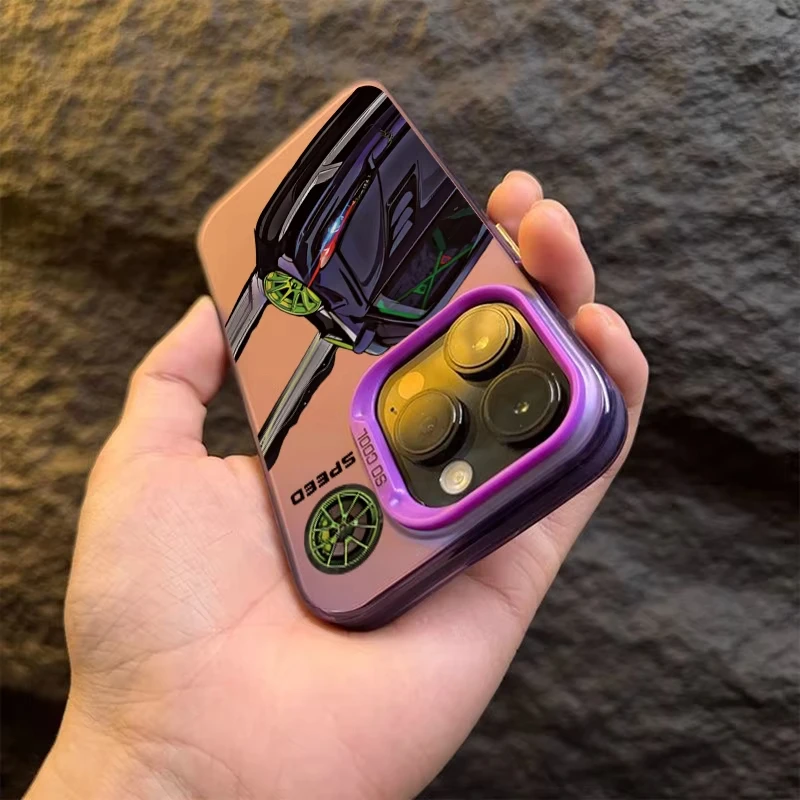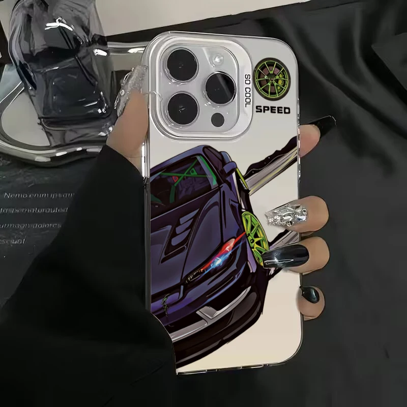 These High-Gloss Performance Car Graphic Phone Cases offer the ultimate blend of luxury and tuning culture. They feature a detailed, neon-accented performance car graphic on a highly reflective, mirror-like surface (Silver or Purple). The case includes a protective black TPU bumper and bold accents, perfect for car enthusiasts who appreciate a flashy, high-speed aesthetic.
