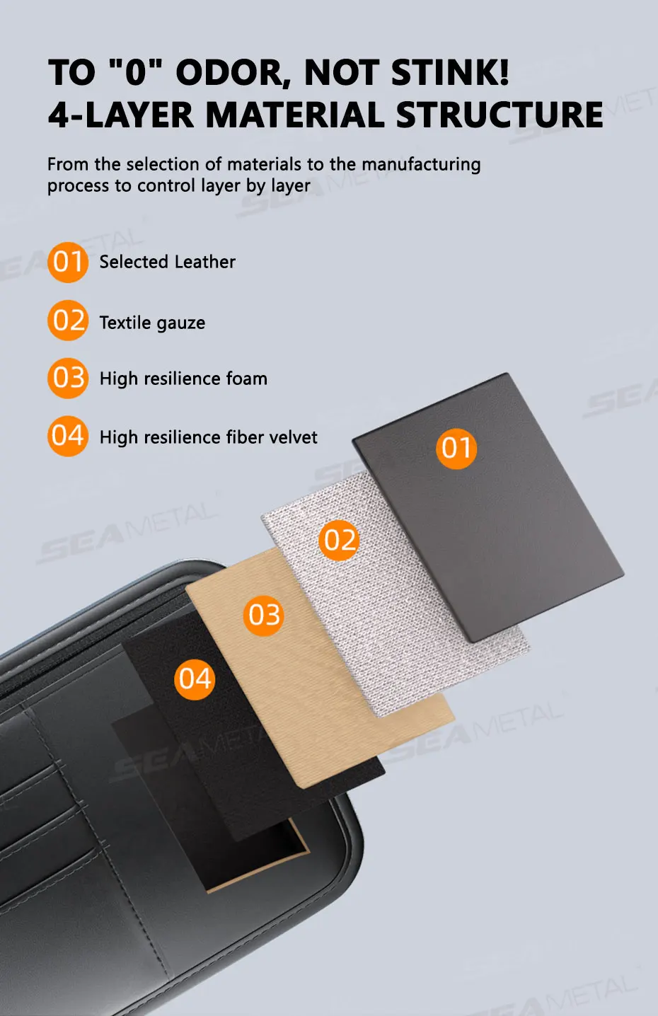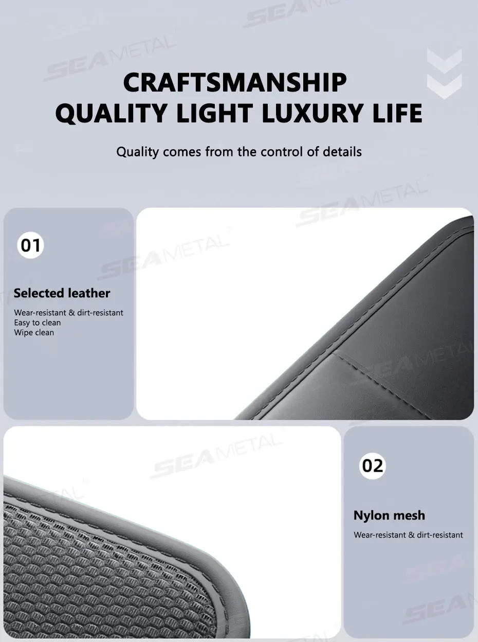 Design & Material: Made from "Selected Leather" (likely PU Leather) with multiple layers, including textile gauze, high resilience foam, and high resilience fiber velvet. It features a sleek, sophisticated black finish.