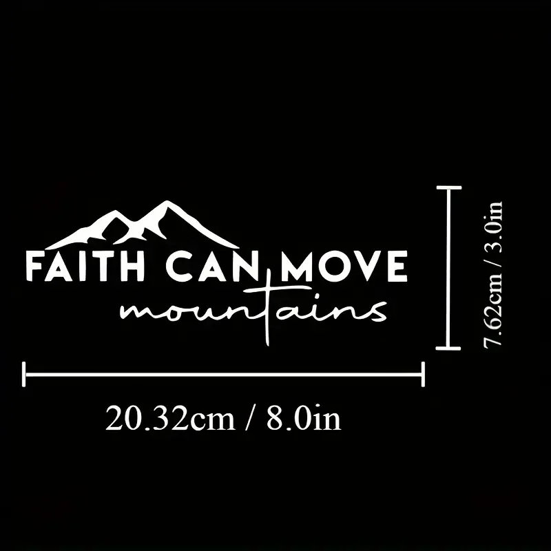 This product is an inspiring Vinyl Decal Sticker featuring the powerful message: "Faith Can Move Mountains". Perfect for personalizing your belongings, this decal is a durable and motivational accessory for Cars, Trucks, Walls, Laptops, and more.
