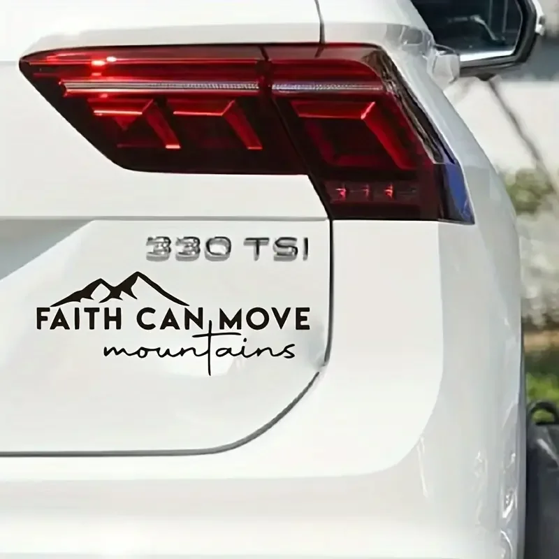 The "Faith Can Move Mountains" decal is a simple yet powerful way to display your motivation and belief. Its perfect size makes it visible on a car bumper or laptop, serving as a daily positive affirmation. Made from durable vinyl, it ensures your message is resilient against the elements, making it a long-lasting, meaningful decoration for any item you own.
