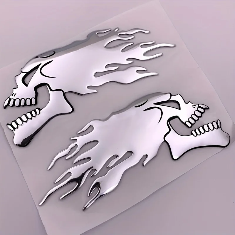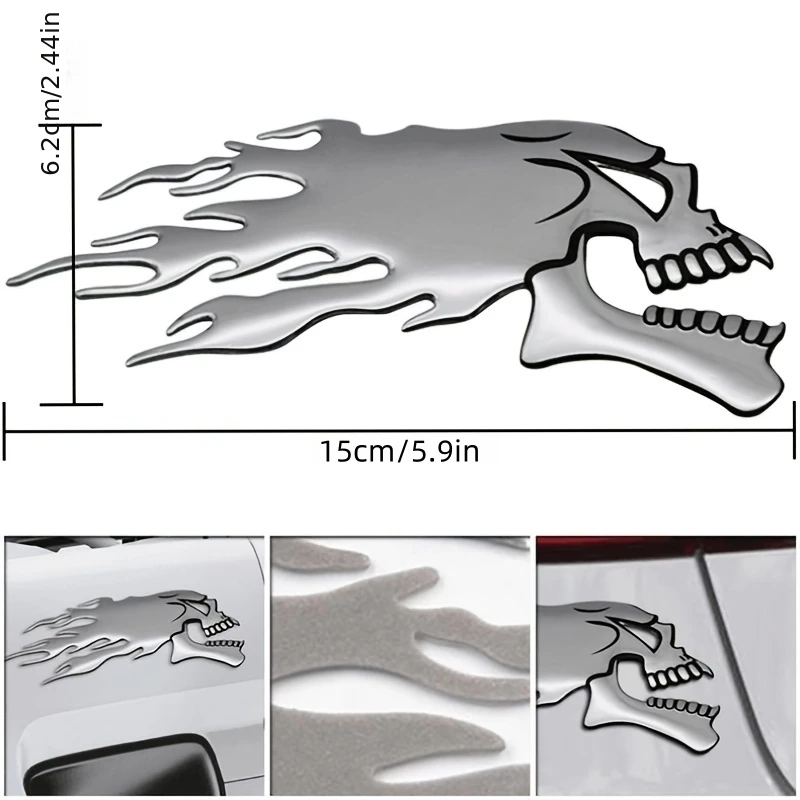 This Flaming Skull decal is an iconic piece of automotive culture. It's a quick, affordable, and permanent way to inject significant attitude and history into your vehicle's design. Whether you choose the sleek chrome or the high-contrast vinyl, this emblem is guaranteed to make a powerful visual statement.
