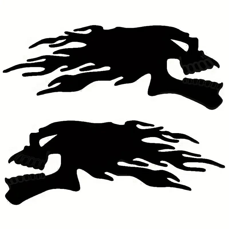 This powerful and menacing decal set features a fierce skull with flames streaming from its jaw, offering a classic hot-rod and biker aesthetic with a modern, high-impact finish. It's designed to add an aggressive, speed-obsessed look to any vehicle panel.