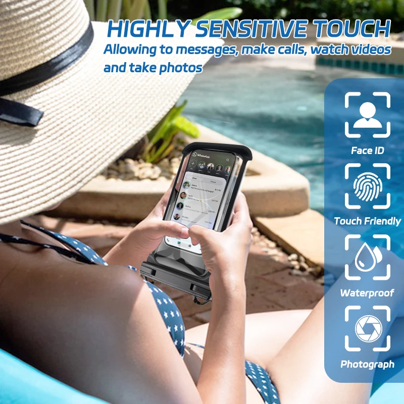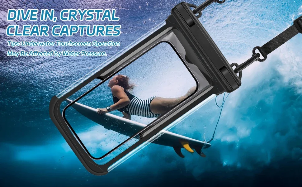 Crafted with durable, airtight PVC and a secure triple-seal lock system, it provides IPX8-level waterproof protection. The transparent touch-sensitive window allows you to use your screen, camera, and apps without removing the phone, making it ideal for photos, videos, GPS navigation, and messaging during your activities.