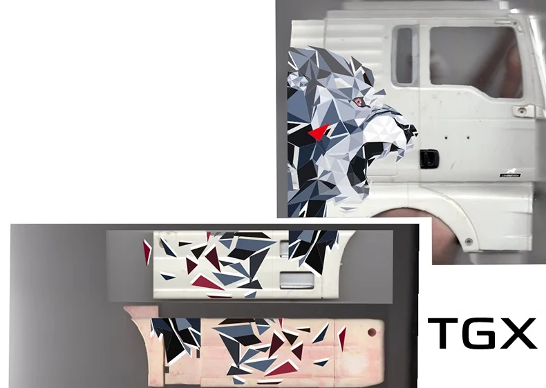 Geometric Lion/Wolf Graphics Model Sticker - 1/14 RC Truck Decal Kit
