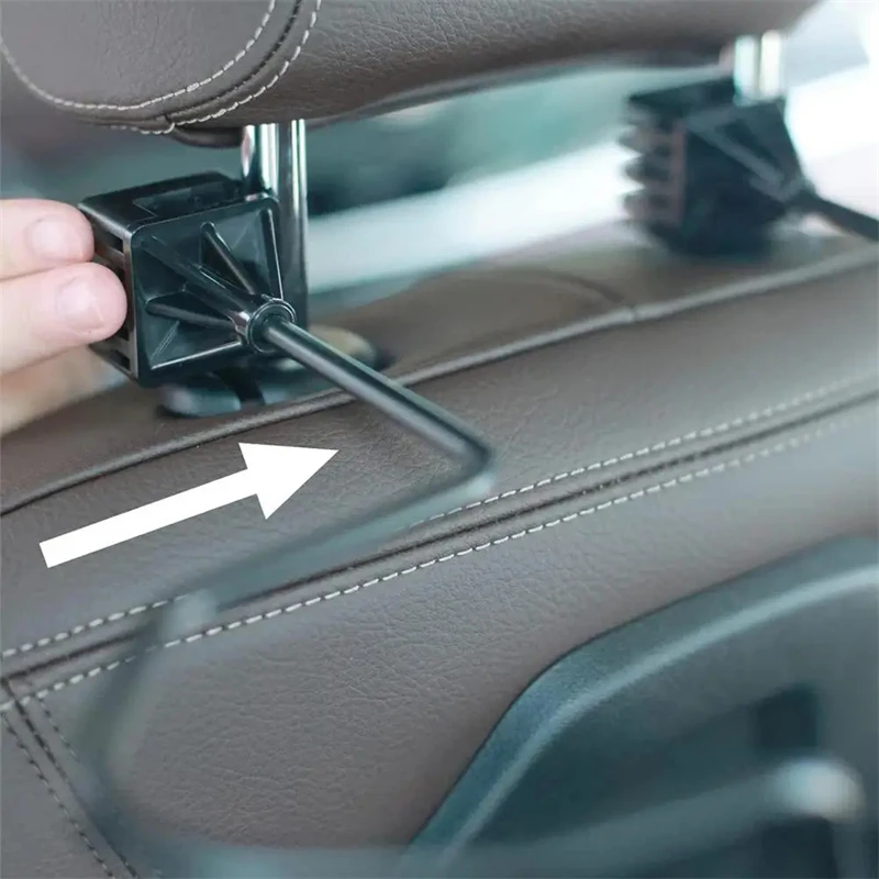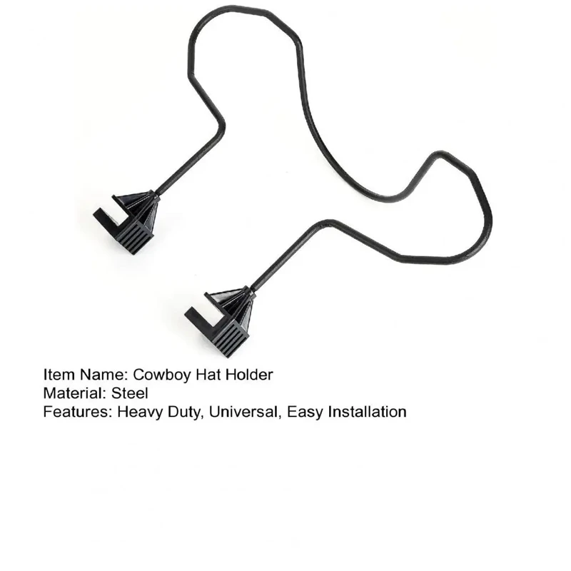 This product is a rugged and practical vehicle storage solution designed specifically for Western enthusiasts and workers. Crafted from heavy-duty steel (often chrome-plated or powder-coated black), this rack mounts securely to the back of your seat's headrest, providing a dedicated spot to hang cowboy hats, cowgirl hats, or hard hats without crushing the brim or losing the shape.