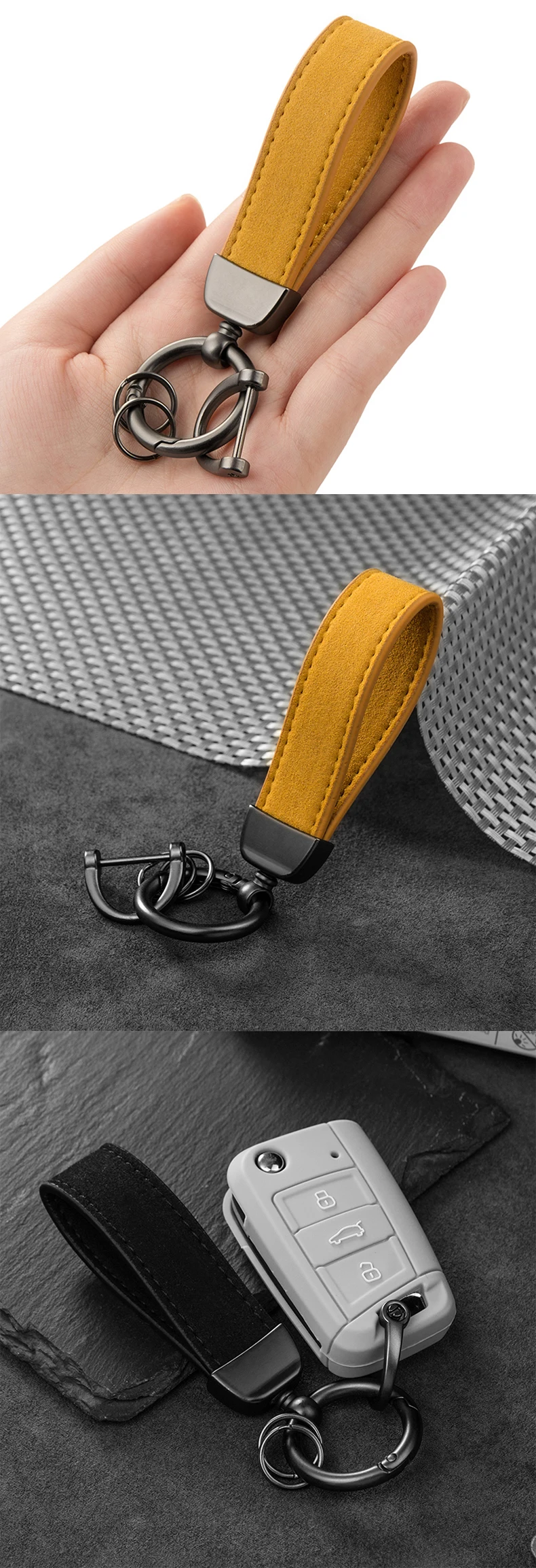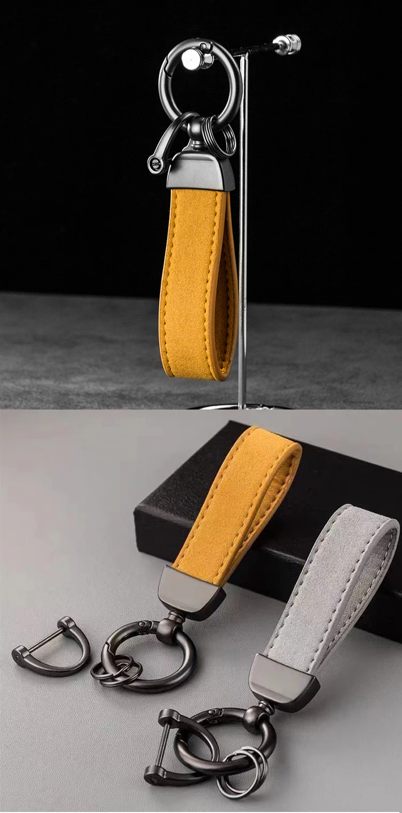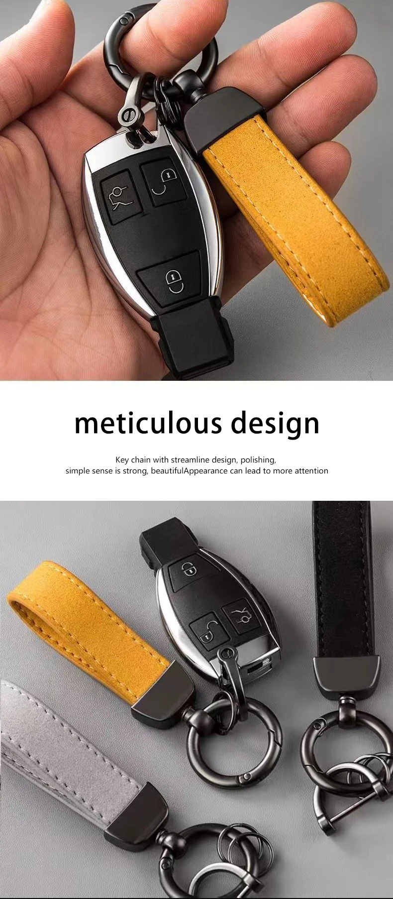 Attachment: Features a secure metal chain connected to a classic split key ring, ready for immediate use.