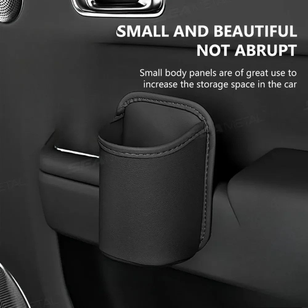 Leather Car Door Cup Holder & Storage Bin - Back Clip Organizer