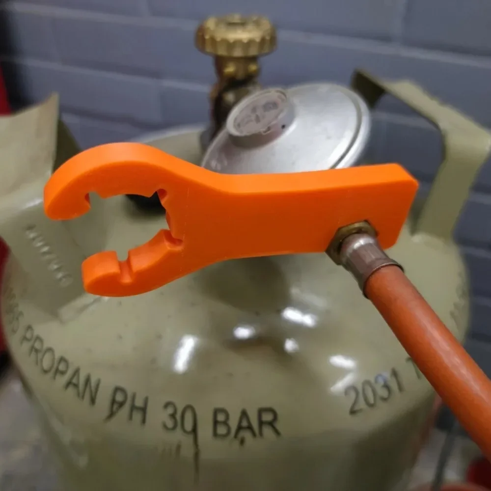 Functionality: Serves as a "2in1 Gas Wrench", designed to securely tighten and loosen common nuts on gas regulators, bottle connectors, and potentially the main cylinder valve. It provides leverage without risking overtightening.