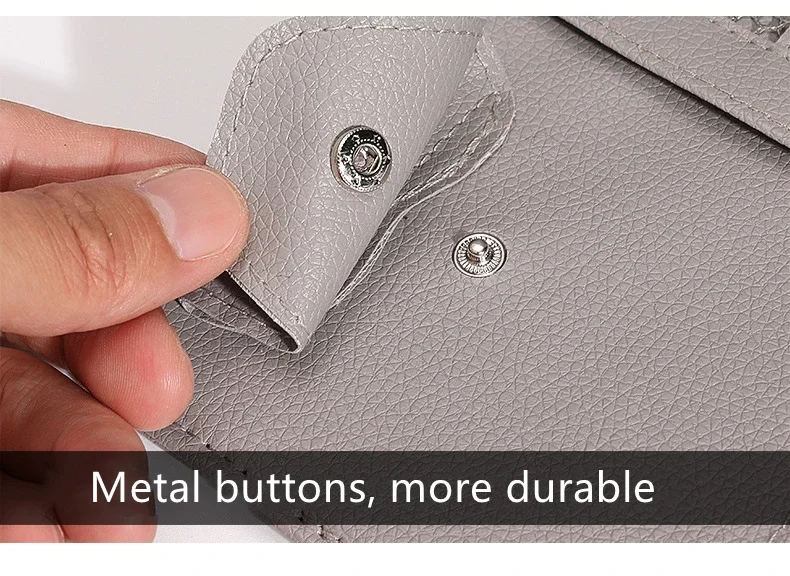 Advanced Storage: Features extensive organization options, including a "Hidden Money Pouch", a secure "Zipper Storage Pocket" for valuable items, dedicated slots for Card Holders, a clear pouch for Documents Holder, and a pocket for a Mobile phone bag (x1).