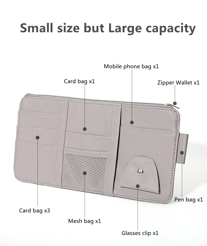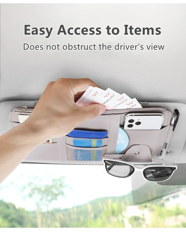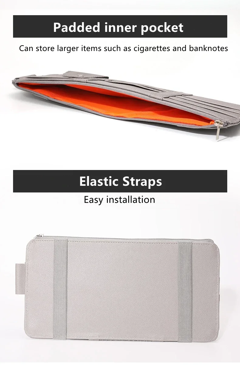 Installation: Uses simple and robust straps or adjustable elastic bands to achieve "Firm fixation" to the sun visor, allowing the organizer to be flipped up and down easily without sagging.