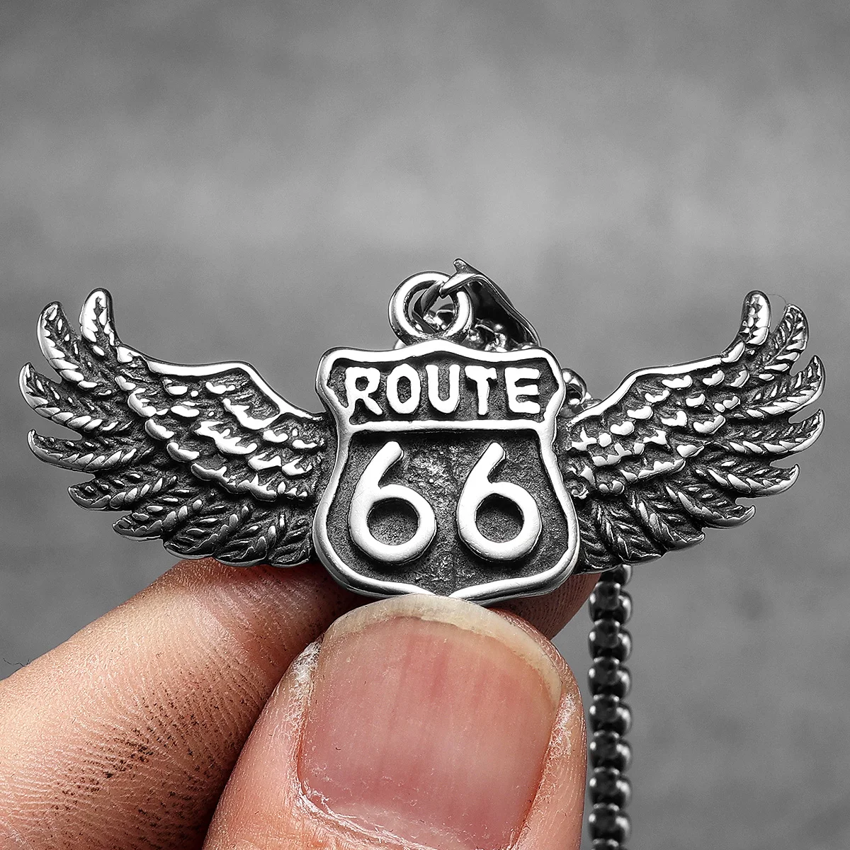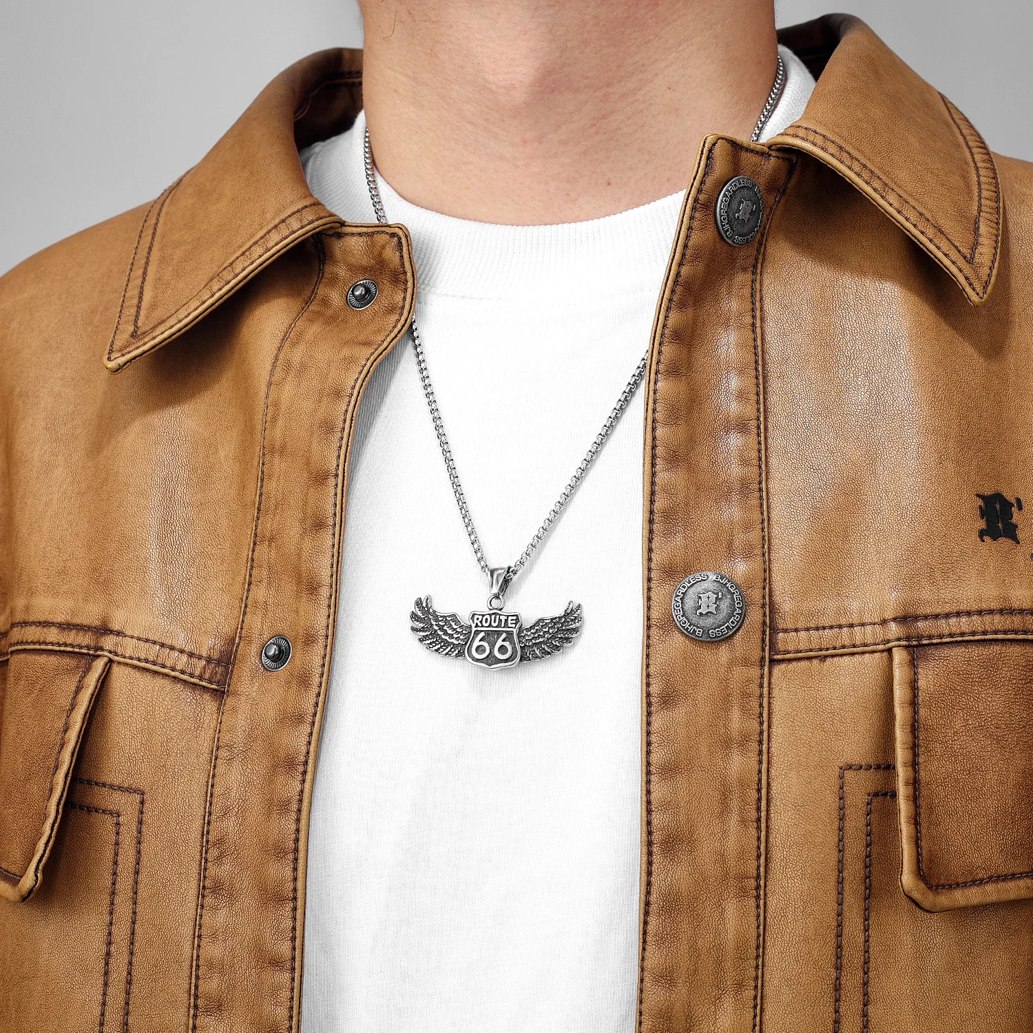Ride with the spirit of the open highway wearing the Route 66 Rider Wings Men Necklace — a bold and meaningful piece designed for bikers, travelers, and adventure lovers. Combining the iconic Route 66 emblem with powerful wing details, this necklace symbolizes freedom, speed, protection, and the unstoppable desire to explore.