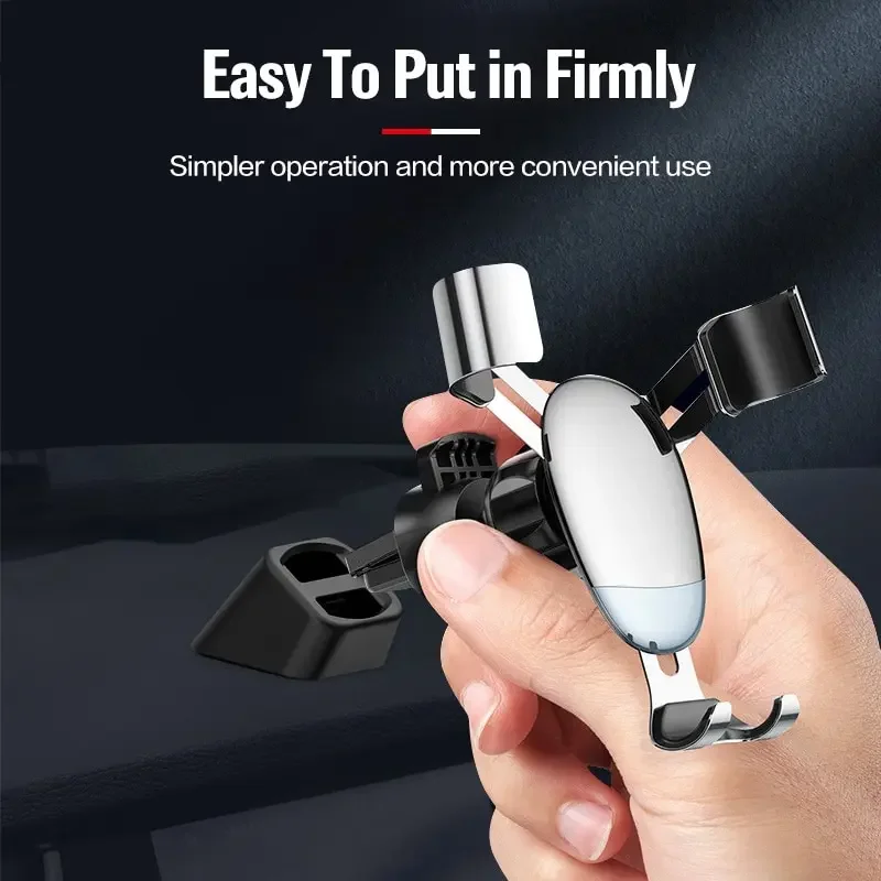 Design & Graphic: Features a modern, geometric "Universal Stand Base" design with a sleek black finish that integrates seamlessly with any car dashboard.