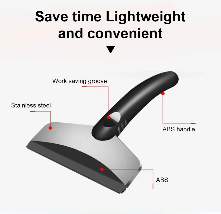 Functionality: This tool has "Four functions": "Snow removal," "Shovel ice," "Defrost," and breaking "frozen frost." The sharp edge efficiently scrapes ice without damaging the glass, while the wider blade quickly pushes away accumulated snow. It makes "Snow removal without freezing hands."