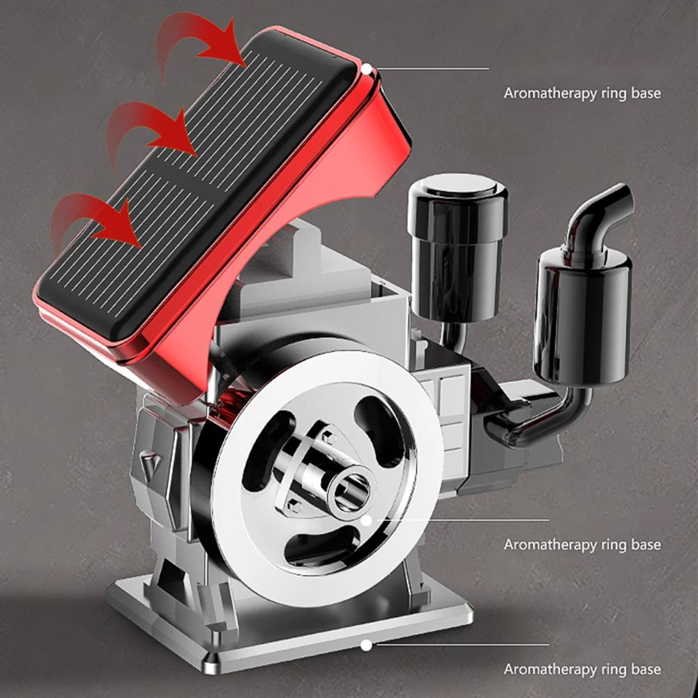 The Solar Powered Engine Aromatherapy is a clever and engaging way to show pride in mechanical engineering. The instantly recognizable "engine" design provides a fascinating visual as it rotates under sunlight, subtly highlighting a passion for machinery. Its eco-friendly, solar-powered design makes it perfect for the dashboard, making it a favorite accessory for any modern gearhead or engine lover.