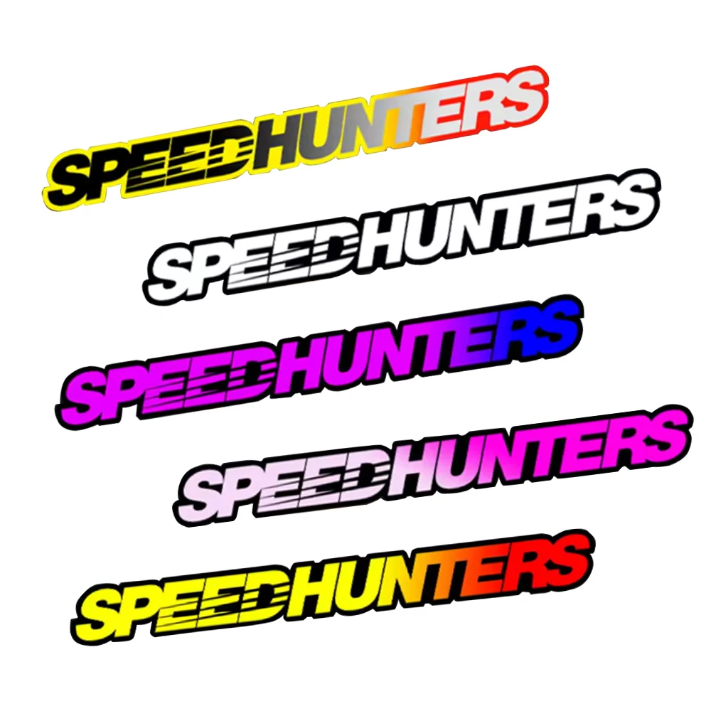 Design & Aesthetics: Features the iconic "SPEEDHUNTERS" text logo in a bold, elongated font. It is available in various eye-catching color variations, including gradient, rainbow, holographic, or solid colors.