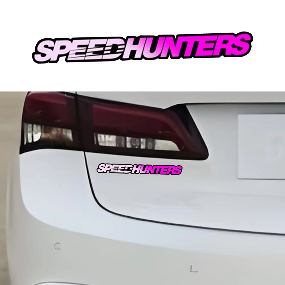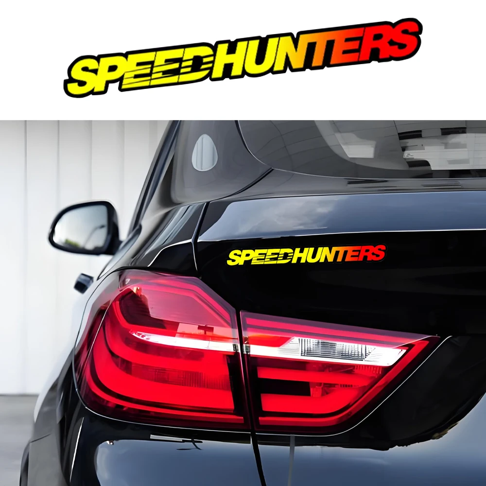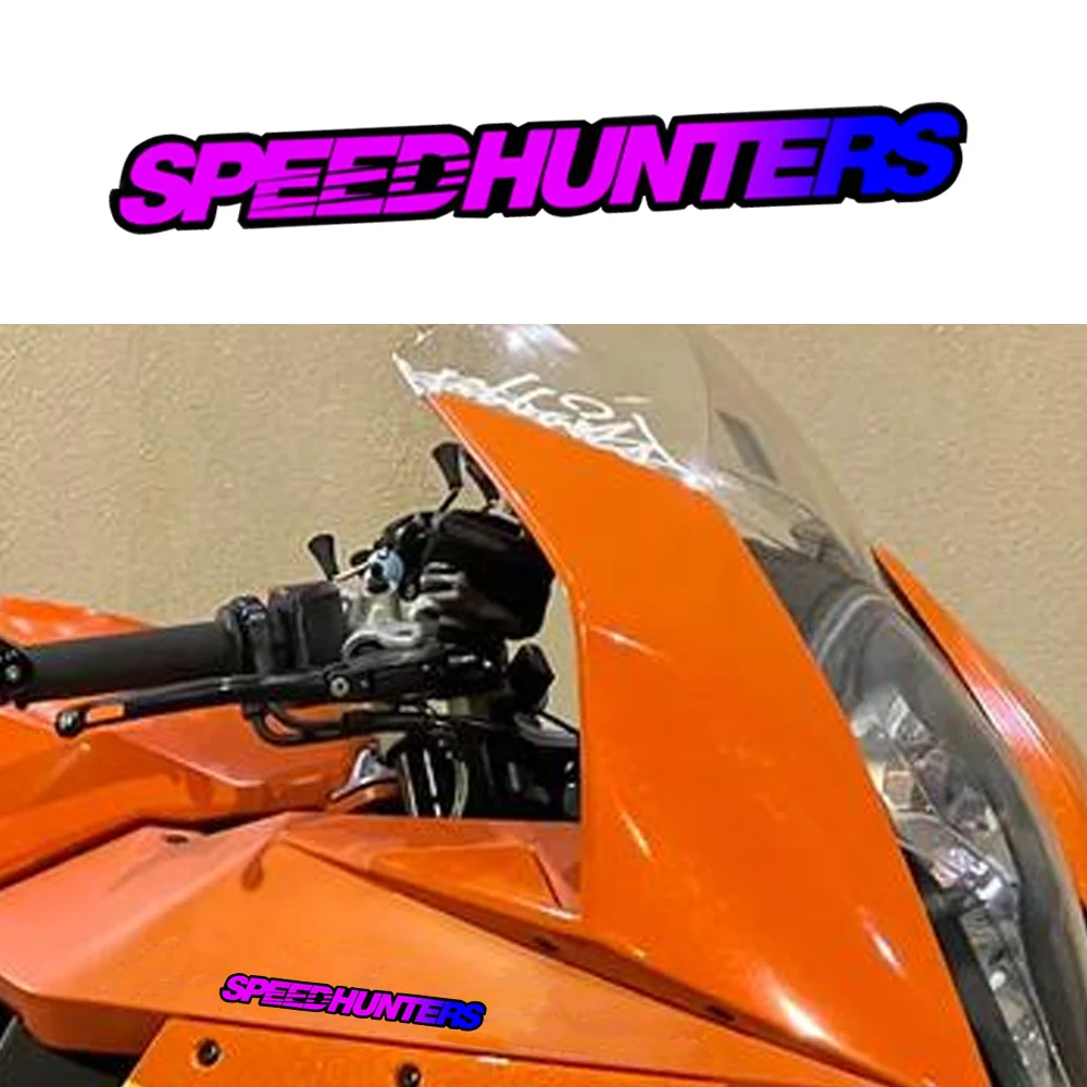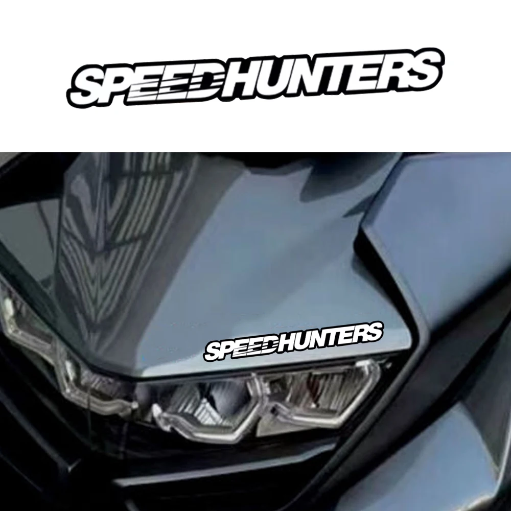 This is a decorative vinyl decal featuring the distinctive "SPEEDHUNTERS" logo and text. It is marketed primarily as a waterproof accessory for motorcycles, but its universal appeal makes it popular for cars and other vehicles, reflecting an enthusiasm for auto tuning and performance culture.