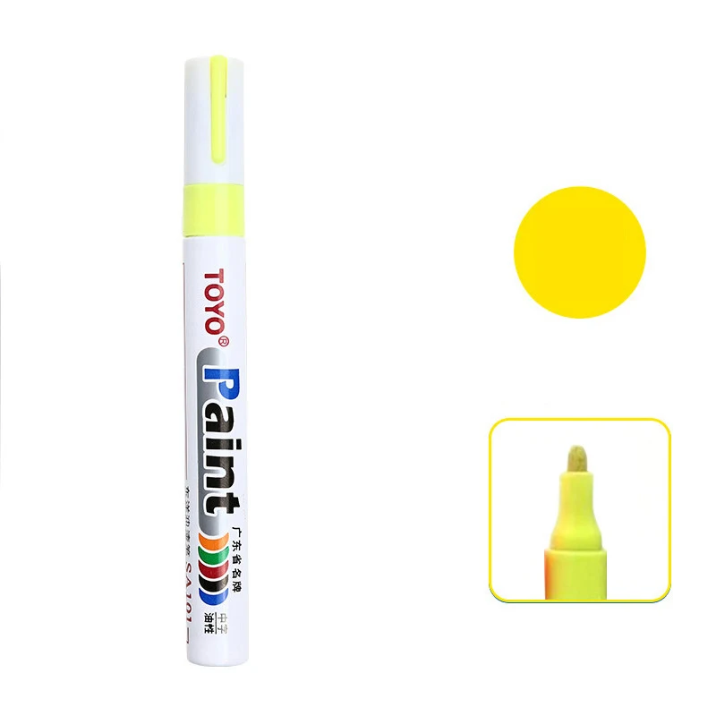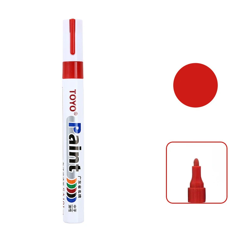 This product is a highly opaque and durable Permanent Paint Marker Pen formulated with an oil-based ink for superior performance on tough surfaces. Designed specifically for automotive use, it is the ideal tool for creating bright white marks on tire sidewalls or performing touch-ups on metal and other materials.